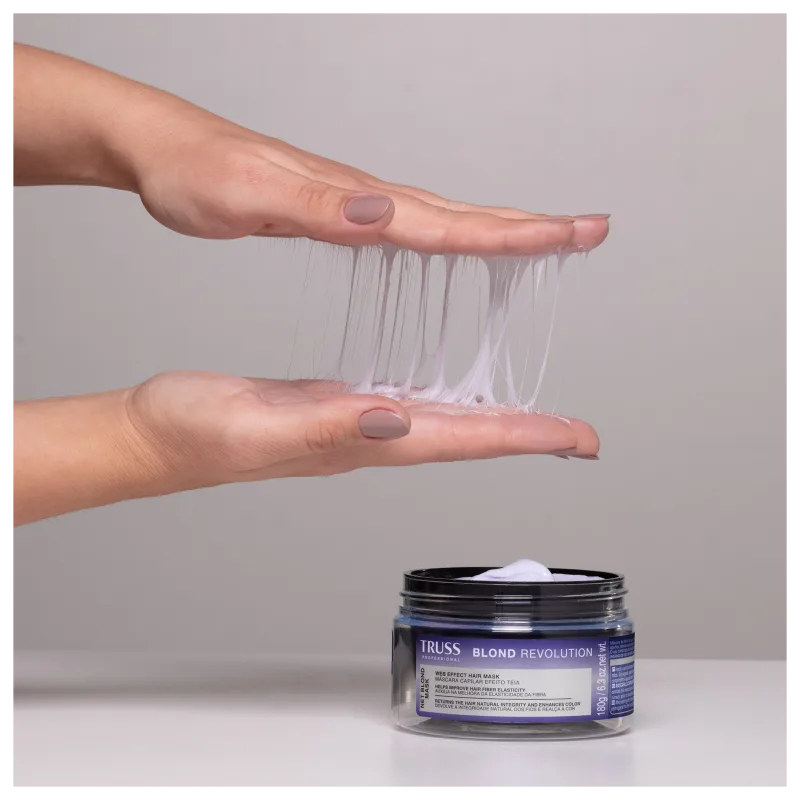A Máscara Capilar TRUSS Net Blond Revolution reduz em 90% a quebra e repara as ligações complexas danificadas pela descoloração. Com a recuperação das pontes moleculares e a reposição da proteína perdida, seu ativo biotecnológico age diretamente no córtex, aumentando a elasticidade e combatendo a porosidade. Quando usada em conjunto com a linha Blond Revolution, ela atua nas diferentes ligações capilares, reparando os fios descoloridos em todas as camadas. Com a inovadora tecnologia Bond Restore, a máscara elimina amarelamento, opacidade e porosidade, proporcionando 10 vezes menos quebra e garantindo fios protegidos e reestruturados.